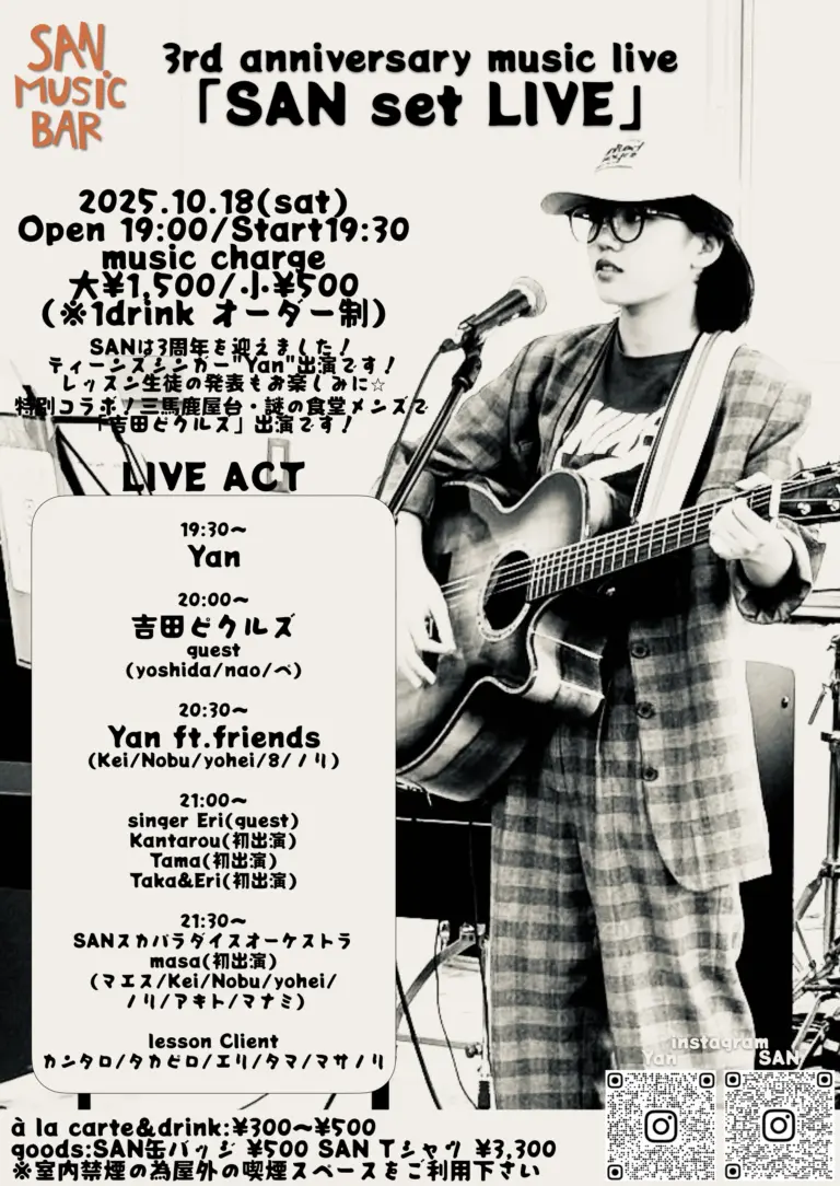 SANは3周年を迎えました。ティーンズシンガー”Yan”出演です!レッスン生徒の発表もお楽しみに!特 […] -